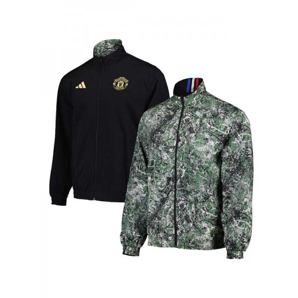 Manchester united windbreaker jacket black green tracksuit men's training coat 2025-2026